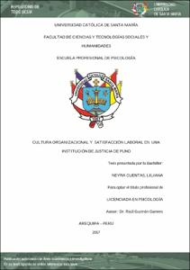 Ítem Acceso Abierto Cultura Organizacional y Satisfacción Laboral en una Institución de Justicia de Puno(Universidad Católica de Santa María, 2017-06-22) Neyra Cuentas, LilianaResumen El siguiente estudio pretende verificar la relación entre la Cultura Organizacional y la Satisfacción Laboral en una Institución de Justicia de la ciudad de Puno. En la investigación se aplicó dos cuestionarios, el primero de cultura organizacional, (Organizacional Cultural Assessment Instrument – OCAI) y el segundo de satisfacción laboral, (SL-SPC Palma 1999). El motivo de esta investigación es estudiar la relación que existe entre la cultura organizacional y la satisfacción laboral en una institución de justicia, se desea identificar cual es la cultura organizacional actual y cuál sería la cultura organizacional deseada, ver si esto se relaciona de alguna manera en el nivel de satisfacción de los trabajadores. Si las normas, valores y estructura de la institución permiten satisfacer las necesidades del personal que trabaja en la mencionada institución. Como resultado de esta investigación se determinó que el tipo de cultura organizacional actual predominante es el tipo Mercado y que el tipo de cultura organizacional deseada predominante es tipo Clan. También identificamos que el personal tiene un nivel de satisfacción laboral promedio. Por ultimo identificamos que si existe una relación entre algunas características de tipos de cultura organizacional con algunos factores de satisfacción laboral. Palabras Clave: Cultura Organizacional, Satisfacción Laboral.Ítem Acceso Abierto Influencia del tiempo epidemiológico de aislamiento por COVID - 19 en el clima social familiar de estudiantes de segundo a quinto año de secundaria de una Institución Educativa Particular de Puno, 2020(Universidad Católica de Santa María, 2021-05-18) Neyra Cuentas, LilianaLa crisis mundial por la COVID-19 ha traído consigo cambios importantes en la sociedad, uno de los cambios más importantes fue vivir un tiempo epidemiológico de aislamiento y como las familias y sus miembros se adaptaron. El objetivo de esta investigación es conocer cómo este tiempo epidemiológico de aislamiento por COVID-19 ha influido en las dimensiones del clima social familiar de los estudiantes de segundo a quinto año de secundaria de una institución educativa particular de la ciudad de Puno en el año 2020. La metodología utilizada corresponde a una investigación de campo correlacional, en la cual participaron 181 estudiantes de secundaria de ambos sexos, entre segundo y quinto de secundaria, quienes cumplieron los criterios de inclusión y para la cual se aplicó un cuestionario de Tiempo Epidemiológico de Aislamiento y la Escala de Clima Social Familiar de Moos y Tricket. La investigación fue realizada en los meses de setiembre y octubre del año 2020, obteniendo los siguientes resultados, 46.4% de los estudiantes que pasaron mayor tiempo epidemiológico de aislamiento percibieron un nivel de relaciones familiares promedio, opuesto a los resultados de los otros dos tiempos, de igual manera un 19.3% de los estudiantes que pasaron mayor tiempo epidemiológico de aislamiento percibieron un nivel de desarrollo familiar promedio, y no percibieron tener un nivel de desarrollo familiar deficitario, a diferencia de los otros dos tiempos. Por lo que se puede concluir que los estudiantes que pasaron mayor tiempo epidemiológico de aislamiento por COVID-19, tienen una mejor percepción de su clima social familiar en las dimensiones relaciones familiares y desarrollo familiar dentro de sus familias.
