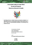 Ítem Acceso Abierto Recuperación de la mujer víctima de violencia familiar y la implementación de los hogares de refugio por mandato de la Ley N° 30364 en la Municipalidad distrital de Wanchaq-Cusco, periodo 2020-2022(Universidad Católica de Santa María, 2024-06-25) Segura Candia, MadeleineLa presente investigación sobre “Recuperación de la mujer víctima de violencia familiar y la implementación de los Hogares de Refugio Temporal por la Ley N° 30364 en la Municipalidad Distrital de Wanchaq-Cusco, periodo 2020-2022”, se ha planteado a partir del problema general ¿Cuál es la relación que existe entre la recuperación de la mujer víctima de violencia familiar y la implementación de la Ley N° 30364 en lo que respecta a los Hogares de Refugio Temporal en la Municipalidad Distrital de Wanchaq-Cusco, periodo 2019-2022?. Para lo cual el objetivo general fue determinar la relación existente entre la recuperación de la mujer víctima de violencia familiar y la implementación de la Ley N° 30364 en lo que respecta a los Hogares de Refugio Temporal en la Municipalidad Distrital de Wanchaq-Cusco, periodo 2020-2022. En el mismo sentido es menester señalar que, la investigación se ha realizado utilizando el enfoque cualitativo, con un tipo de investigación aplicada para que, a partir del análisis crítico e interpretativo de las instituciones jurídicas contenidos en la Ley N° 30364 y el Decreto Legislativo N°635 Código Penal, así como las modificatorias contenidas en el Artículo 16º de la Ley Nº 30364, del Decreto Legislativo Nº 1386, se haya planteado una propuesta normativa consistente en la incorporación de un artículo en la Ley Orgánica de Municipalidades sobre la función que deberían cumplir las mismas orientada a proteger y recuperar a la mujer víctima de violencia familiar, teniendo como una de sus principales formas de intervención los Hogares Temporales de Refugio que las leyes en mención ordena su implementación. El tipo de investigación jurídica es socio jurídico, finalmente su diseño de investigación es descriptivo correlacional. Las conclusiones de la investigación fueron: 1.- La Municipalidad Distrital de Wanchaq no tiene implementado ni un solo hogar de refugio para brindar tratamiento a las mujeres violentadas en el seno familiar en el periodo 2020 - 2022; por considerar que no es obligación de las municipalidades por no estar considerada en las funciones establecidas en la Ley Orgánica N° 27972. 2.- La Ley N° 30364 en el Art. 60 numeral 1 literal C, establece el deber de las municipalidades implementar hogares de refugio, omitiendo modificar la Ley Orgánica de Municipalidades. 3.- La R.M. 031-2021 ha señalado como servicio esencial para atender a mujeres víctimas de violencia familiar, los Hogares de Refugio Temporal son concordantes con el Art. 27 de la Ley N° 30364, pero no con la Ley Orgánica de Municipalidades. 4.- Los Hogares de Refugio Temporal son 4 importantes para la protección social y brindar ayuda a las mujeres víctimas de violencia, por lo cual se debe incorporar artículos en la Ley Orgánica de Municipalidades LOM N° 27972 que corresponda a las funciones de autoridades y funcionarios de las Municipalidades para proteger y recuperar a las mujeres víctimas de violencia familiar mediante la implementación de los Hogares de Refugio Temporal, para concordar dicha norma con la Ley N° 30364 y su Reglamento.Ítem Acceso Abierto Incidencia de la efectividad del derecho a la asistencia y la protección integral de mujeres víctimas de violencia psicológica, en la erradicación de la violencia contra la mujer, Arequipa 2023(Universidad Católica de Santa María, 2024-07-10) Muñoz Góngora, YoselineEsta investigación se propuso identificar la incidencia de la efectividad del derecho a la asistencia y protección integral en mujeres víctimas de violencia psicológica en Arequipa durante el 2023; en la erradicación de la violencia contra la mujer. En el estudio en curso, se decidió utilizar la técnica de muestreo y se implementó un cuestionario como instrumento. Este cuestionario fue administrado a 362 mujeres jóvenes, adultas o adultas mayores que han experimentado violencia psicológica en la localidad de Arequipa durante el año 2023. Posteriormente, las respuestas obtenidas fueron procesadas utilizando Excel y SPSS. Los resultados de este estudio indican que hay una correlación positiva moderada e importante entre las variables analizadas, con un resultado de r=0.426. Además, se ha establecido como significativo, ya que el valor bilateral es (valor p = 0.000<0.05). Asimismo, el 69,9% representa una efectividad media debido a la encuestas aplicadas a las féminas que fueron victimas de la clase de violencia mencionada y, en unión a la erradicación, el 54,1% considera que se está logrando de manera efectiva. Tras el análisis realizado, se llegó a la conclusión de que la variable independiente que es la efectividad del derecho a la asistencia y protección integral de las mujeres víctimas de violencia psicológica en Arequipa 2023, influye en la erradicación de la violencia que es la variable dependiente, dado que se observa un vínculo positivo e importante entre las variables investigadas. No obstante, es necesario continuar trabajando en la implementación de políticas y medidas que aseguren la protección de las mujeres en todas las áreas de sus vidas, con el fin de erradicar por completo la violencia de género en la sociedad.Ítem Acceso Abierto Análisis jurídico de las familiar homoparentales a la luz del ordenamiento legal peruano y los derechos humanos, provincia de Arequipa, 2021(Universidad Católica de Santa María, 2022-11-28) Quevedo Romero, RosarioA lo largo de la historia, se han constituido grupos de personas unidos por condiciones similares, pero a la vez distintas a las de la mayoría y, como tales son considerados fuera de “lo normal”, lo que los hace vulnerables y objet