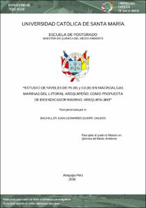 ESTUDIO DE NIVELES DE Pb (II) y Cd (II) EN MACROALGAS MARINAS DEL LITORAL AREQUIPEÑO, COMO PROPUESTA DE BIOINDICADOR MARINO, AREQUIPA-2015