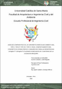 Análisis comparativo de las diferentes marcas de cemento del Tipo I, Tipo IP, Tipo HS y Tipo V, en el comportamiento del concreto en estado fresco y endurecido para las resistencias 210 kgf/cm2 Y 280 kgf/cm2 utilizando agregados de 3 canteras de la ciudad de Arequipa